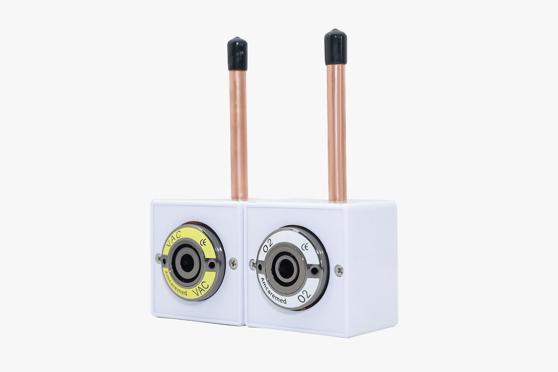 British Standard Medical Gas Outlets are installed at medical gas systems delivery points. The base part made of brass alloy. Twice outlet connection. With shut-off valve can maintain without having to interrupt gas delivery to other outlets. Only accept British standard (BS) quick connect adapters. Different gas type with different quick connect adapters.