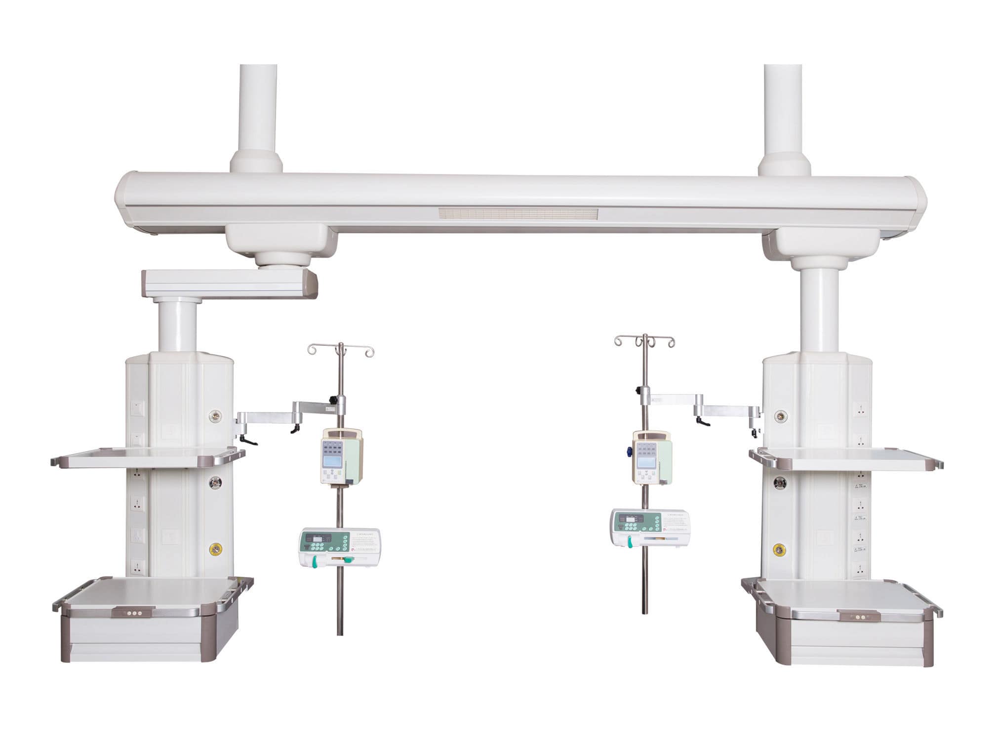 ICU room bridge type pendant leads electrical and gas from the main beam to the base or function box hanger. It can supply economic ICU environment. Same fits for recovery spaces.