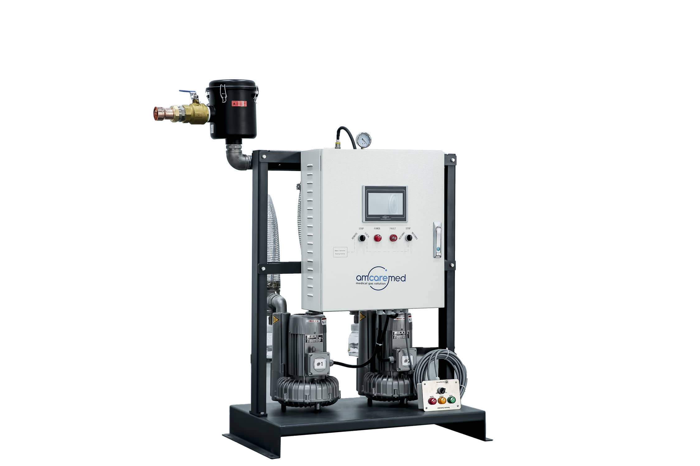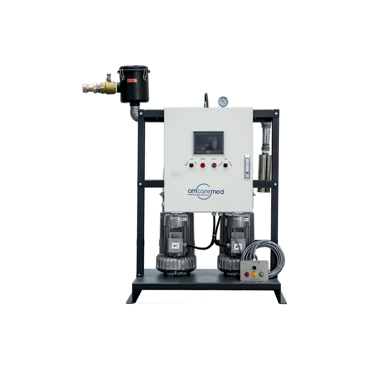 AmcareMed AGSS plant equipped with LCD panel, monitors the signal from the sensor to ensure that scavenging systems are functioning properly and that waste gas levels remain within safe limits, and provide alarm system to alert personnel to any malfunctions or leaks, key information can be displayed on the control panel.