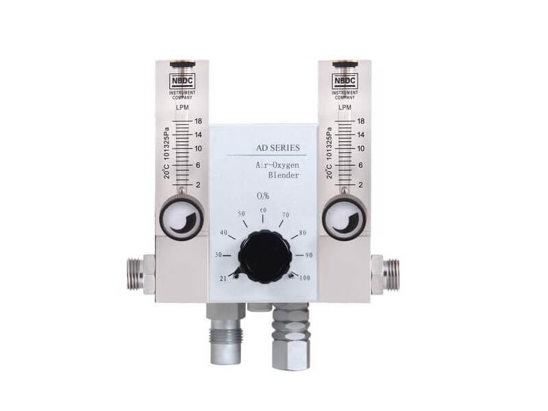 The air-oxygen blender is a device used by medical personnel to control the concentration and flow of oxygen for the rescue of patients with hypoxic problems while avoiding the side effects of pure oxygen inhalation.