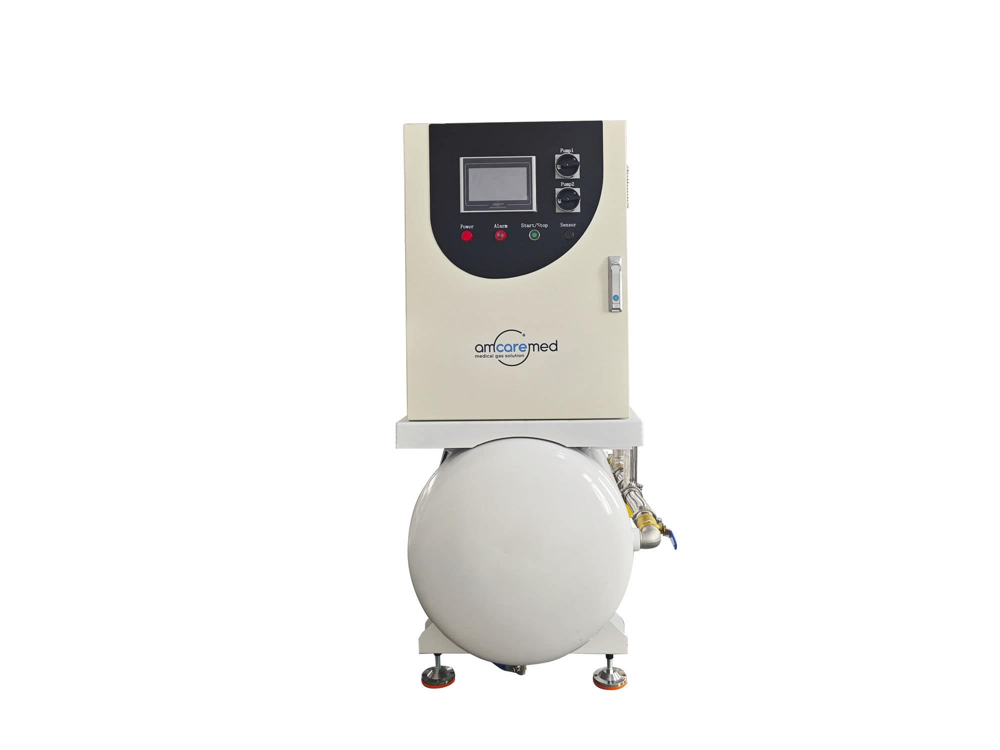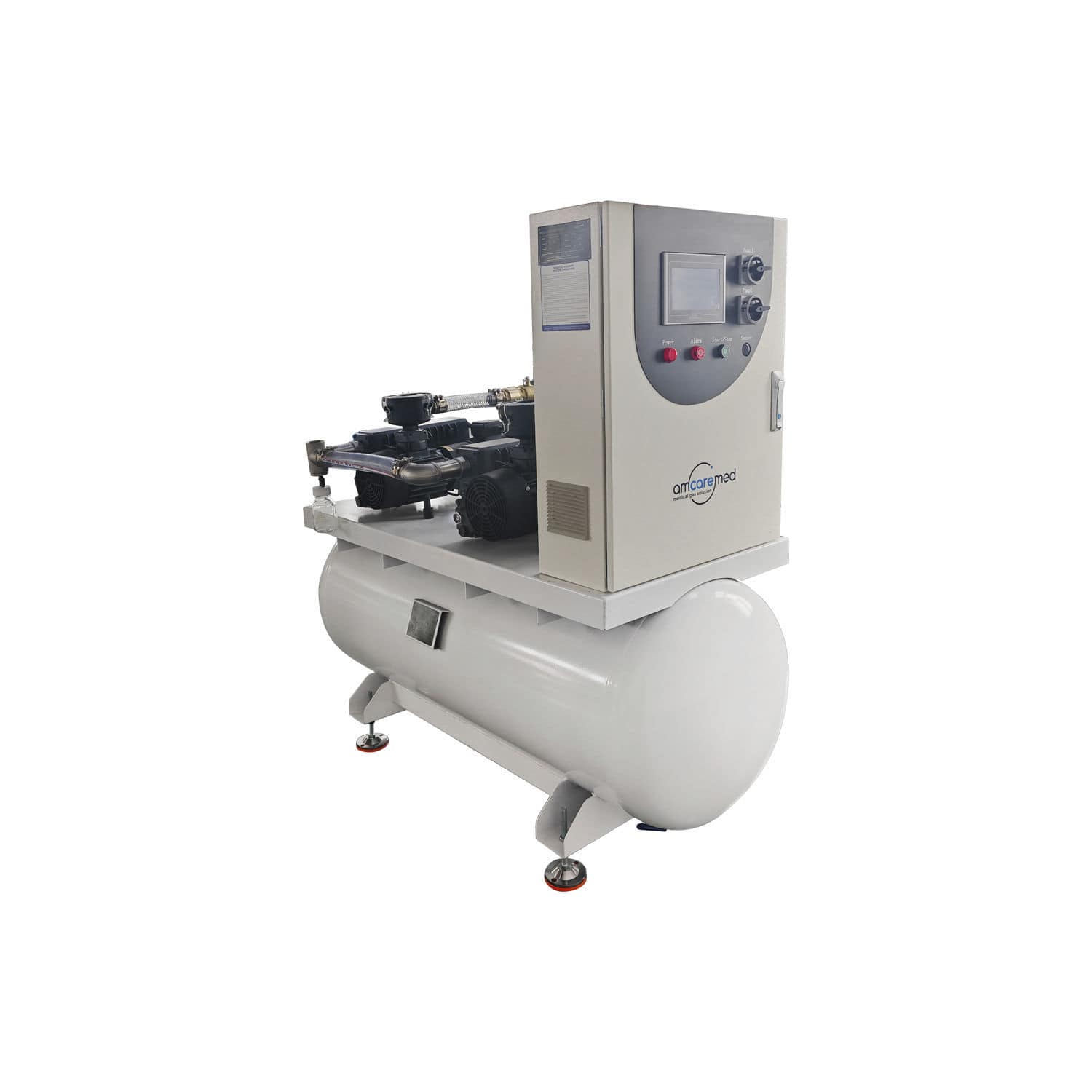 AmcareMed lubricated rotary vane medical vacuum system uses the Schneider brand LCD control panel which is easy to maintain. The medical vacuum pump is available in Simplex, Duplex, Triplex, or Quad, and different capacity receiver tanks are available, meeting different client requirements.