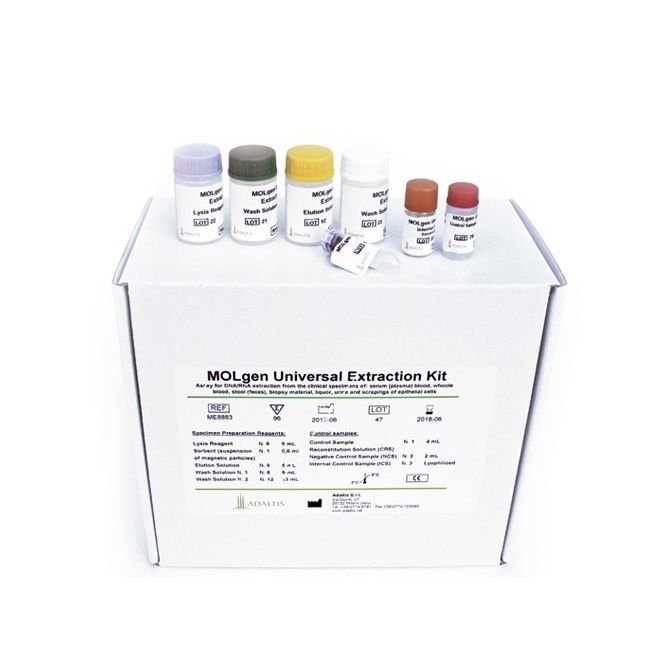 The extraction of DNA from clinical specimens can be performed using the “Molgen Universal Extraction Kit”.When using NA extraction kits of other manufacturers, it is highly recommended to use Internal Control sample (IC) manufactured by Adaltis S.r.l.