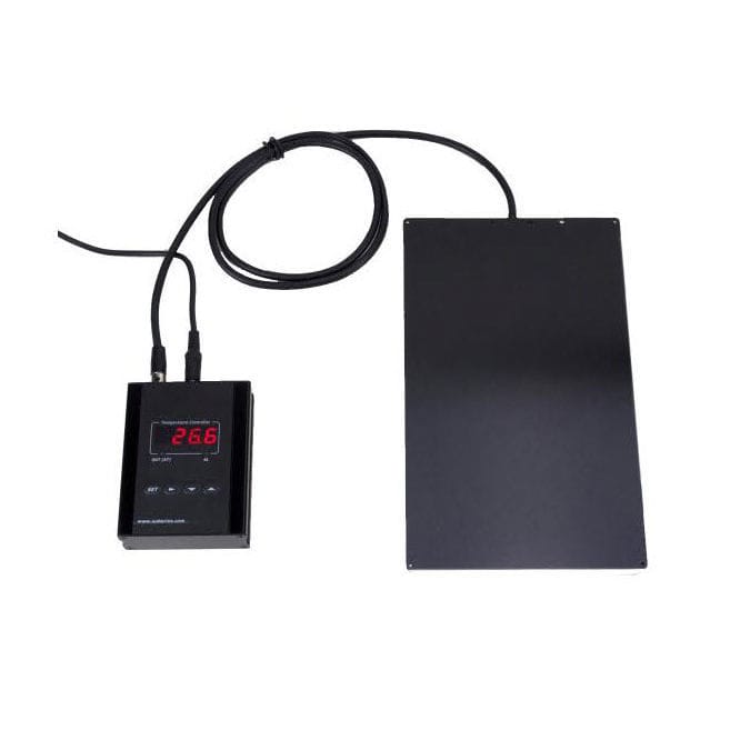 The Somni DC Powered Heat plate with controller is an ultra-slim, low noise heating plate. It allows researchers to maintain the animal’s body temperature at a specific and precise temperature. The power input of the controller is 12 VDC (AC-DC power adapter is included). This low voltage reduces electric noise generated from the heating current. Uniform temperature distribution is achieved over the entire surface, while keeping the plate thin and cost low.