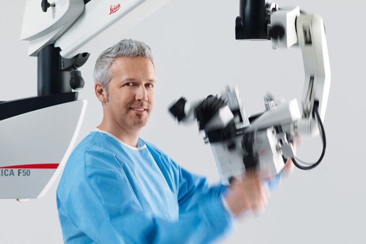 The Leica M525 F50 has been conceived to illuminate the surgical field in the best and safest light possible. The system features two independent 300 W xenon arc lamps and the automatic illumination-control functions AutoIris (magnification-synchronized) and BrightCare (working-distance-synchronized).