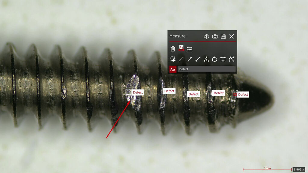 Measure multiple sample features in the live image and save the results together with the image.