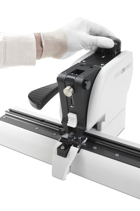 The balanced break method of the Leica EM KMR3 ensures perfect glass knives in three thicknesses 6.4 mm, 8 mm and 10 mm.