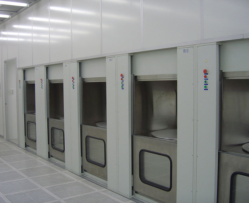 Pass box is a kind of facility, which is located in the partition walls of clean room or adjoining walls to the cleanroom. Its function shall be a buffer area for transferring goods between inside and outside of clean room so that to prevent any disturbance of airflow and air pressure in clean room, which caused by the door opening for goods transferring i.e. it is installed on the wall between two rooms to minimize contamination during transportation of materials. Furthermore, it can reduce the time for operators moving in and out, to prevent any dust coming from the out regions. That’s why there is one interlock guard system controlled the inlet and the outlet of pass box not be opened at the same time, in order to prevent the cross contamination. Air Shower Pass Box Clean Auto Pass box consists of double automatic sliding doors, Hepa Filter, fan and roller conveyor. Transportation of materials can be done automatically by these units from one room to another.