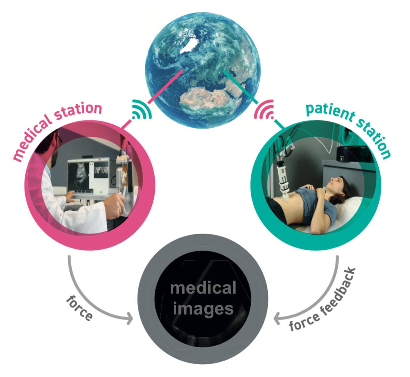 Safety is key. The robot on the patient’s station uses cable-driven technology. The reflected inertia is small, entailing patient comfort and safety. It also has a compliant controller that prevents excessive forces on the patient.