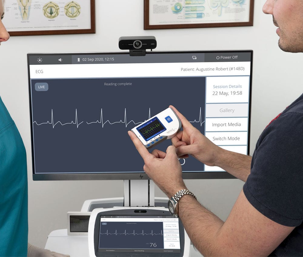 Using cutting edge technology, the battery powered portable ECG machine is an extremely compact and easy to use medical device. Intended for measuring and recording electrocardiogram signals and average heart rates on adult patients. The ECG machine is ideal for use in conjunction with the ProEX Telehealth Hub which allows all readings and waveforms to be recorded and stored against patient records.