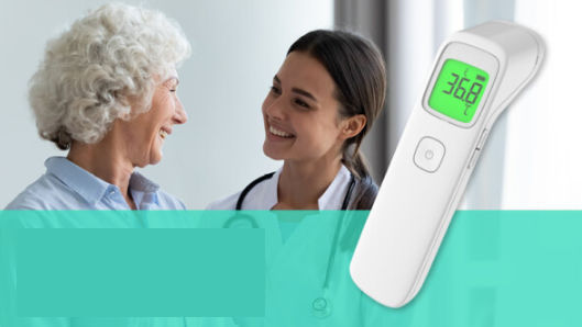 Non-contact infrared forehead thermometer provides accurate touch free temperature measurements in just one second, transmissible via Bluetooth