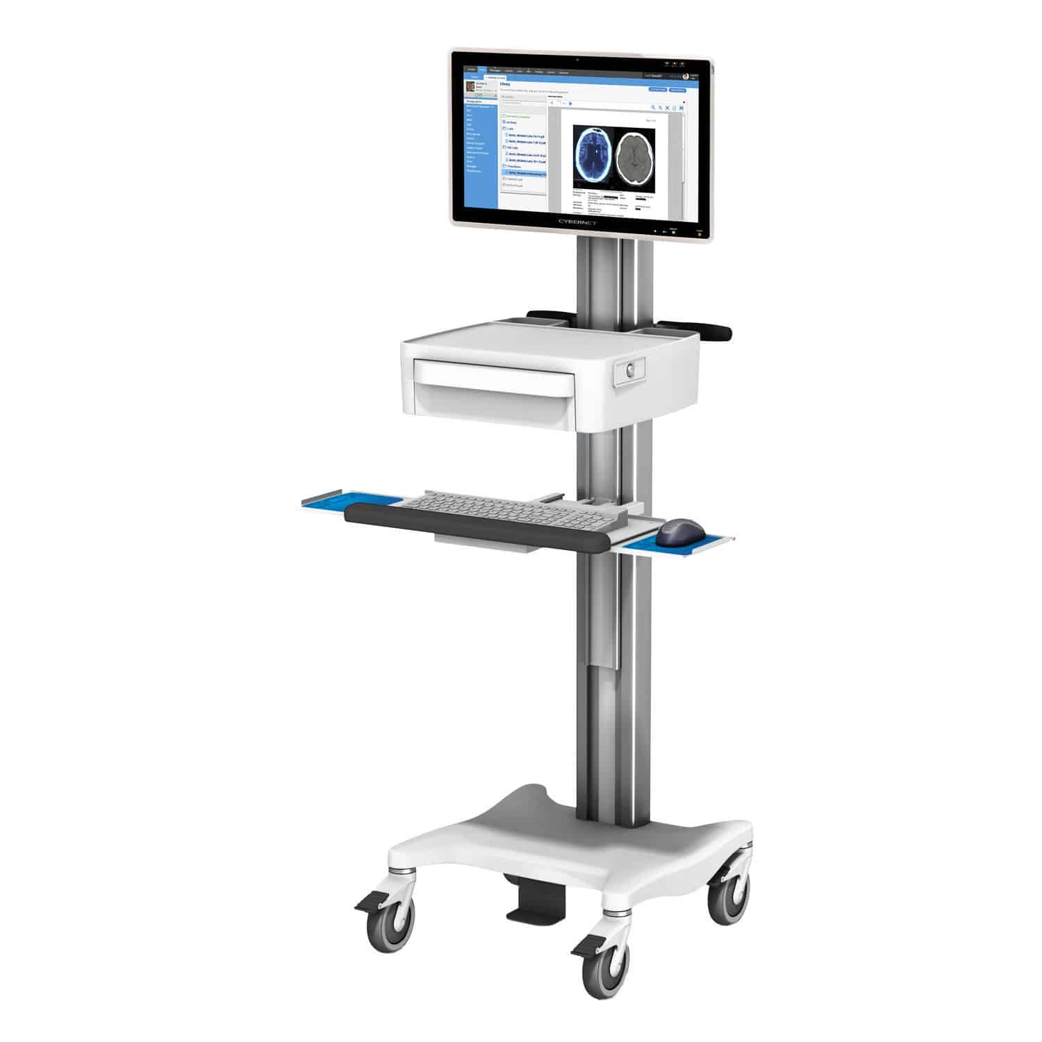 Battery-Powered Medical PC. Power outages are not a problem as this PC comes standard with three hot swap batteries that last up to 16 hours.
