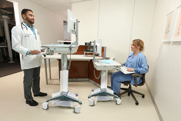 Self-charging capabilities on-board the cart ensure nurses and physicians are powered throughout their entire shift.