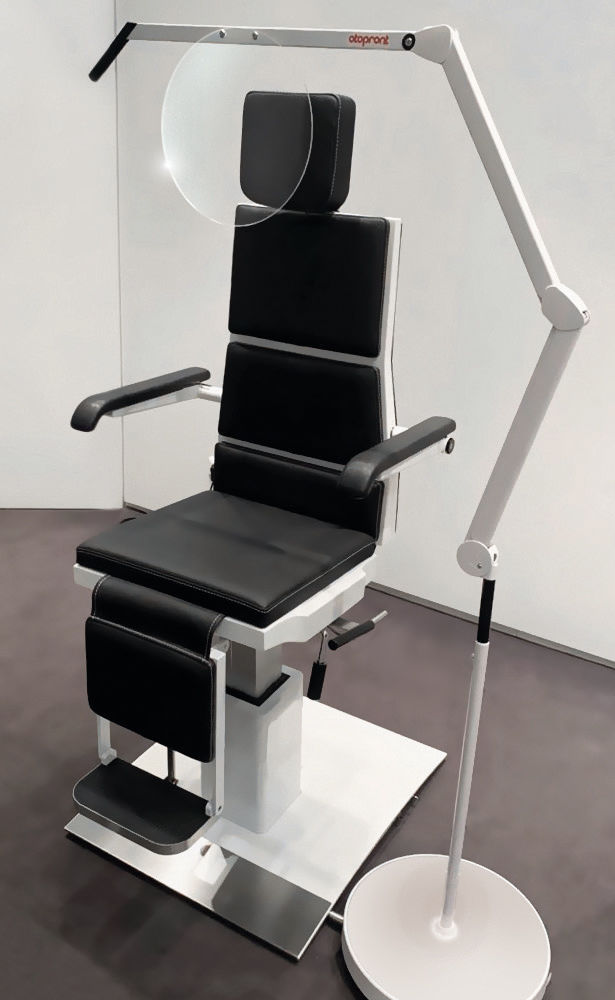 Stand alone version on rollable tripod, easy to fold down. Rollable, compact, slip and tilt-proof thanks to solid base, frame may be positioned on the left or right side of the chair