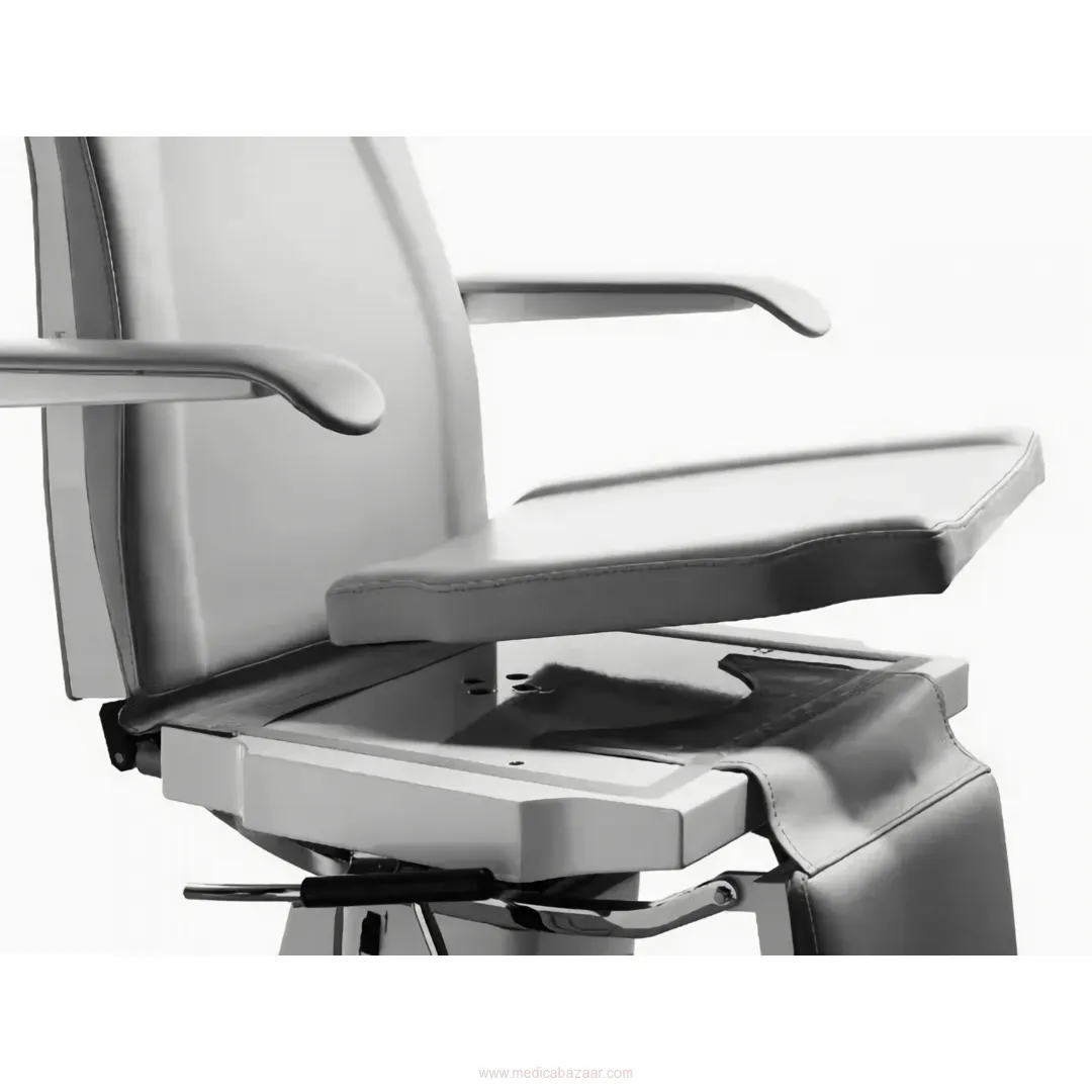 While the backrest of the SIT 4 PLUS is adjusted, the armrests and leg rest simultaneously follow the chair''s sequence of movement until it reaches a completely horizontal position thus ensuring perfect support and patient comfort. In case of a collapsing patient the backrest can quickly be brought into the -10° Trendelenburg position. A floor fixing is not necessary.