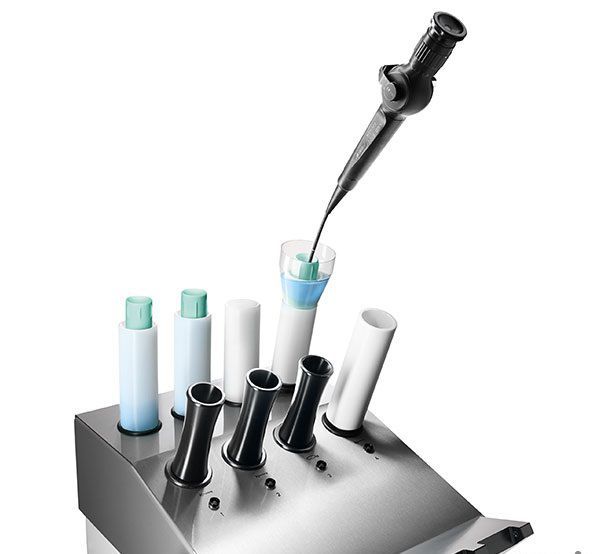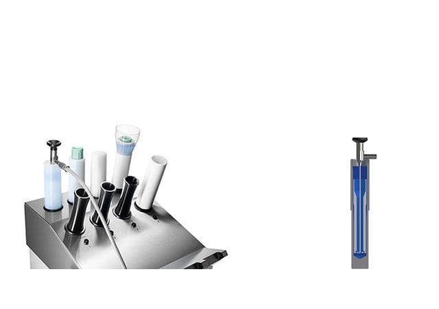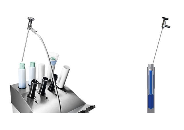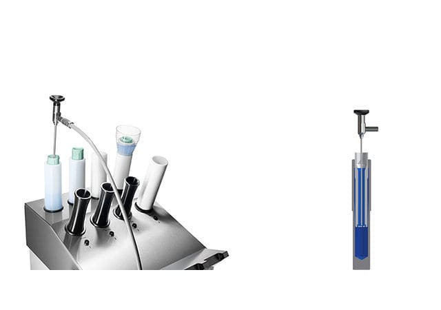 The newly developed inner quiver swims freely inside the outer quiver filled with disinfectant solution and protrudes 2 cm over the edge.