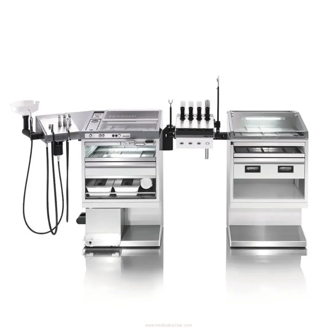 BASIC PLUS 550 mm with endoscopy center with 4 light outlets and instrument cabinet, also available as left-handed version