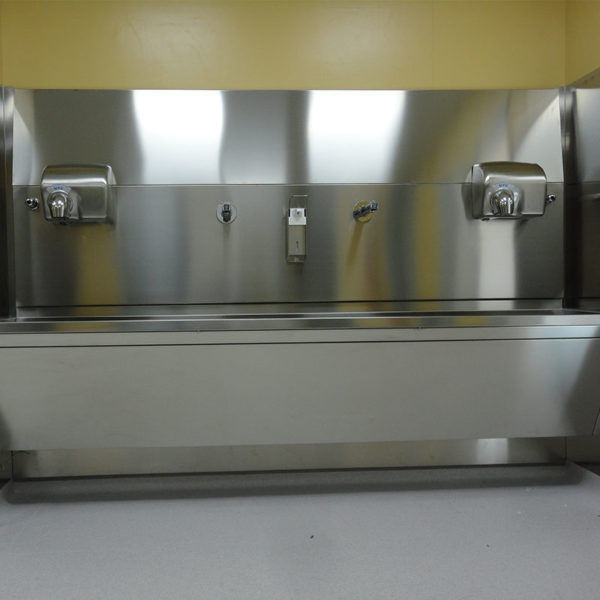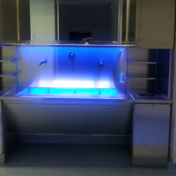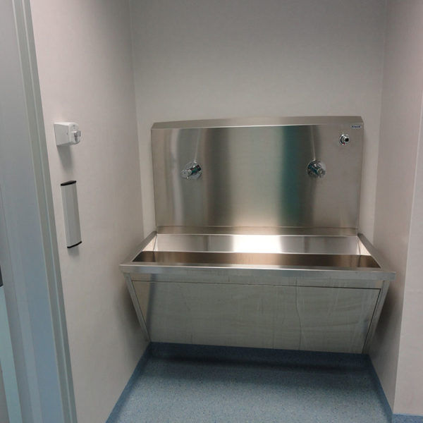 ACCESSORIES: disposable brush dispensers, stainless steel soap dispenser with elbow or electronic control, temperature thermostatic control device to control the water temperature