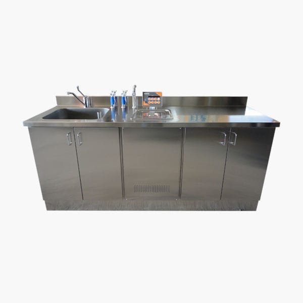 Available in two versions: single mounted on a unit or on a washing bench (Dim.: 600x500x250 h) + air sprayhead (no. 1) or water sprayhead (no. 2)