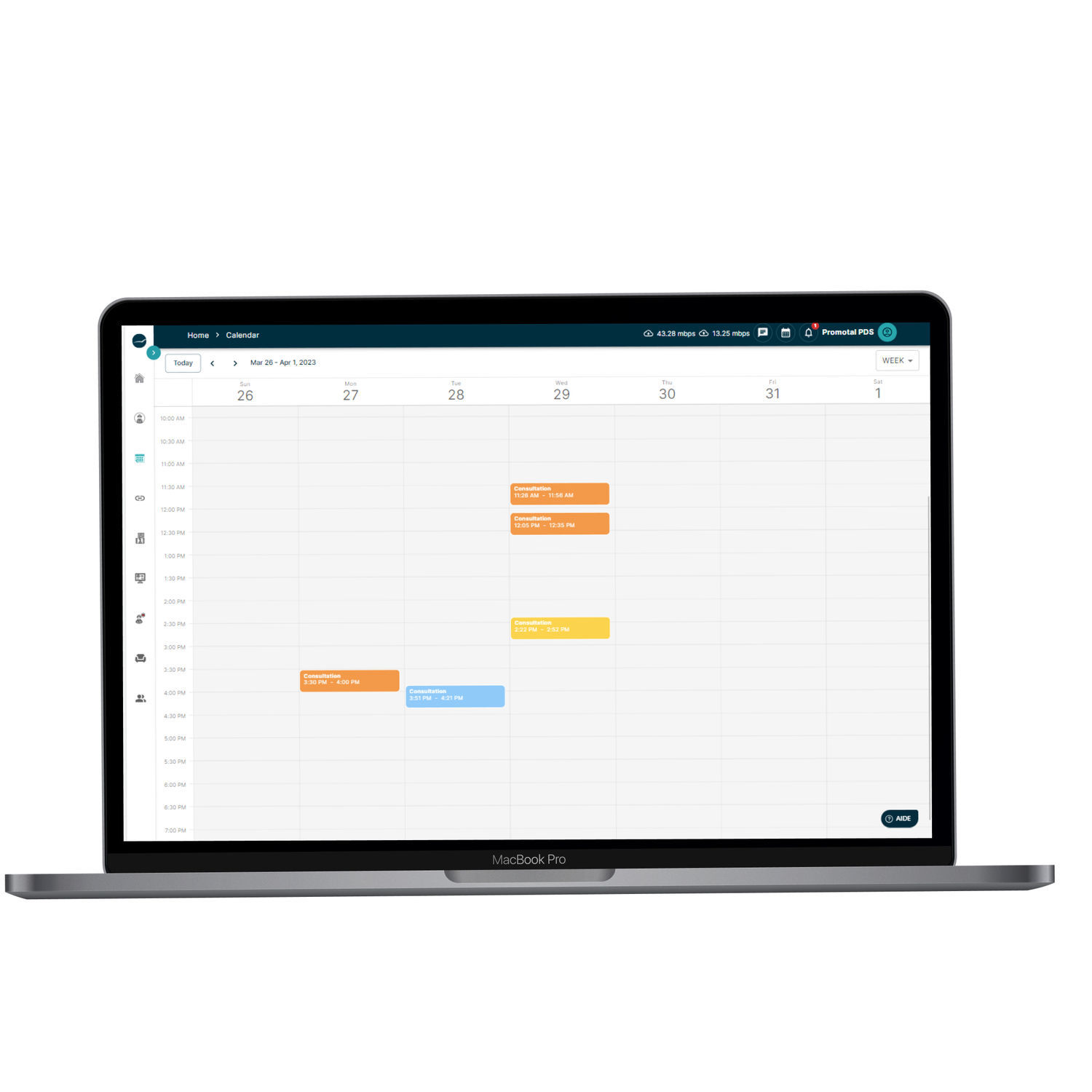 professionals and patients. The interface is designed to simplify the process of scheduling