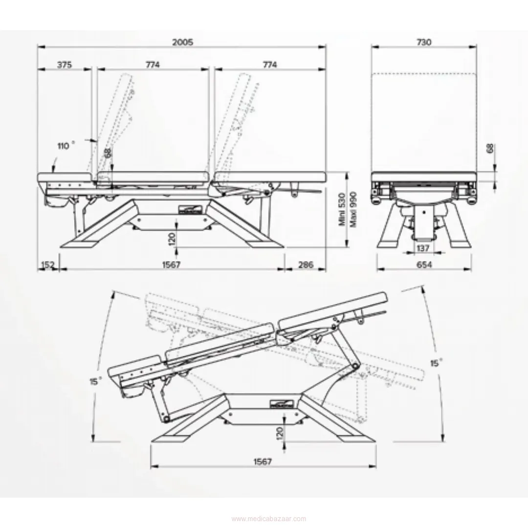 Electrical movements: Height, central backrest, Trendelenburg / reverse Trendelenburg