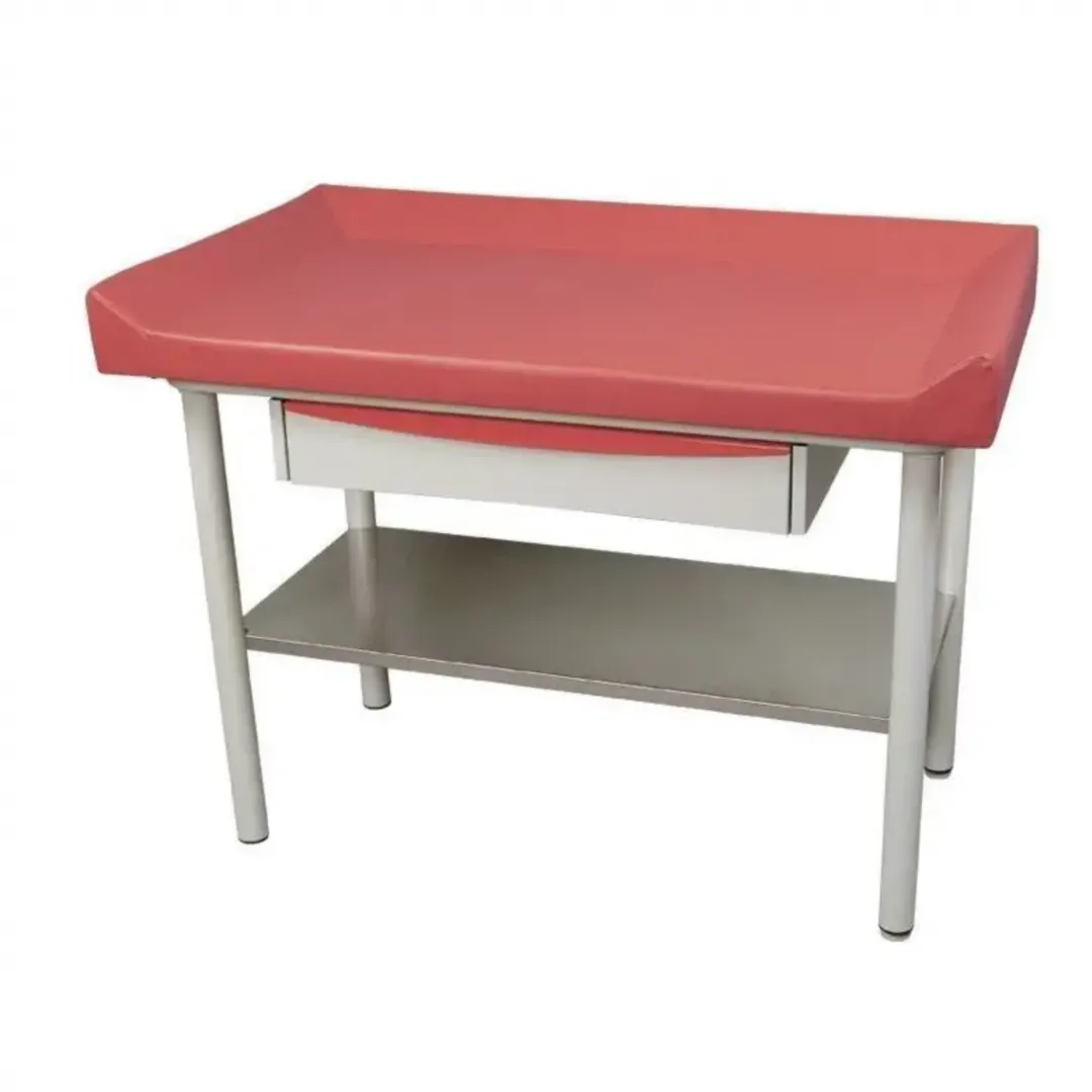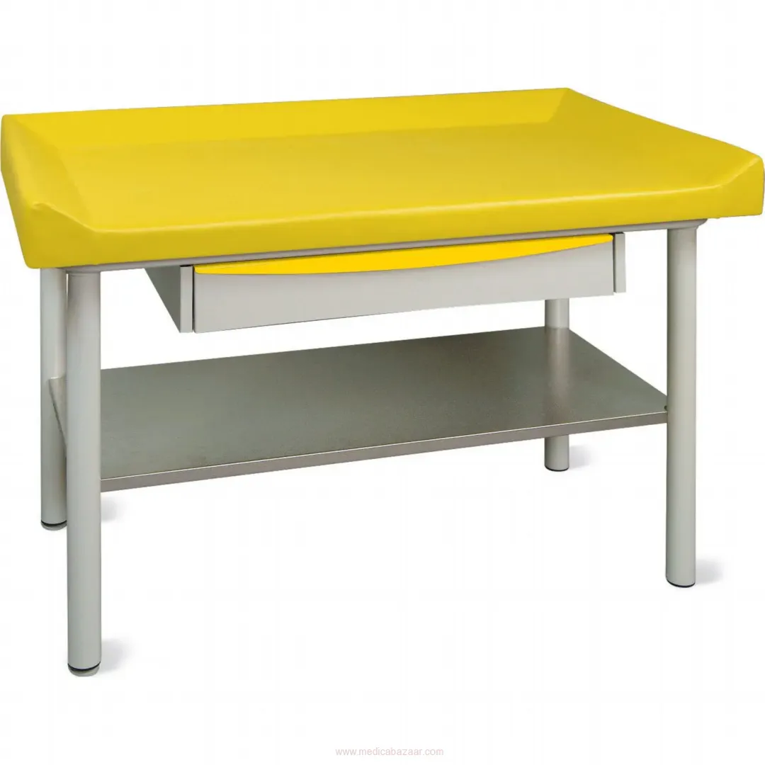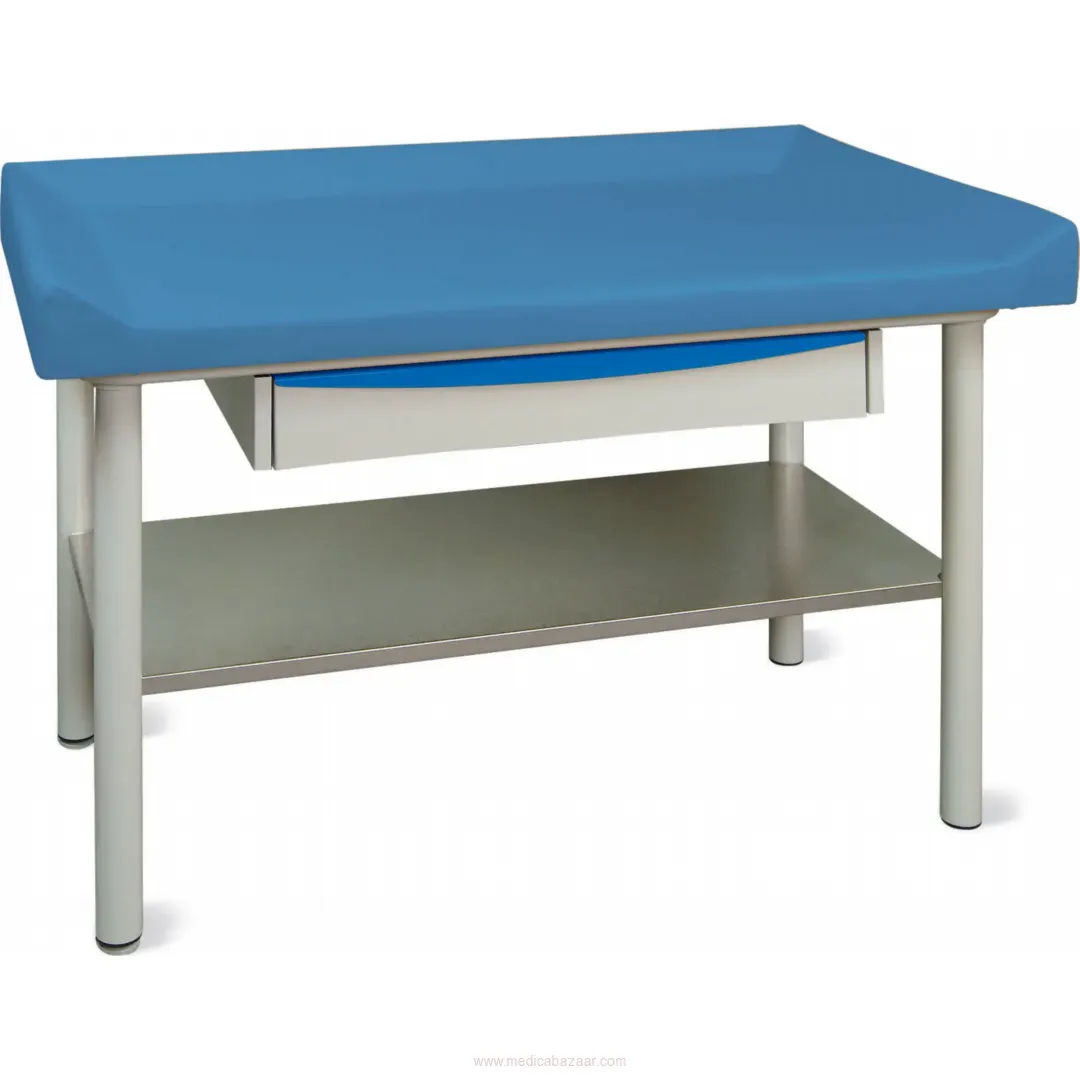 light and strong steel frame, comfortable upholstery, wide choice of colours... the 4365 changing table is the perfect instrument for a successful pediatric practice. The fully welded steel frame enables easy access to all parts for cleaning allowing maximum hygiene. Easy movement thanks to its lightweight design. The drawer1 and shelf2 allow for easy practice of your activity, with all your accessories at hand.