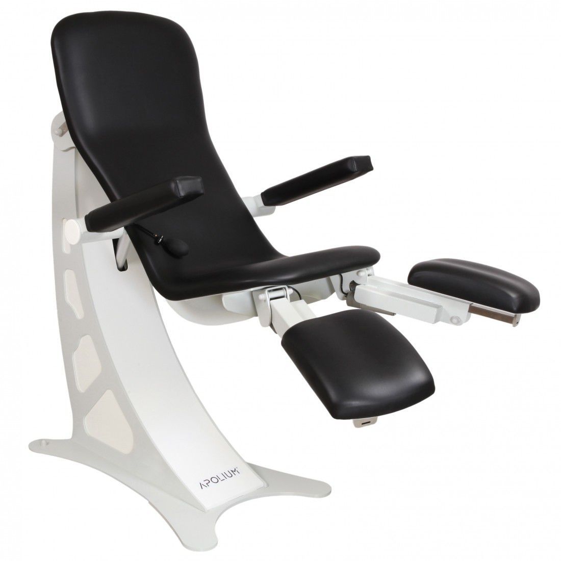 Ergonomic controls: chair height controlled via a wireless intuitive foot pedal with simple adjustment of leg rests.