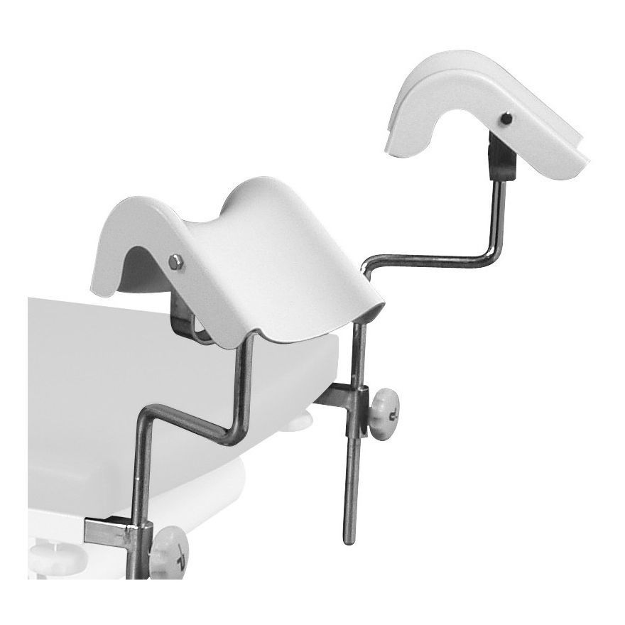 The pair of legrests is an accessory dedicated to all types of gynecological examinations. It promotes excellent support of the patient for a serene examination and maximum comfort while ensuring the maintenance of the legs in the desired position. The legrest can be used on a gynaecological examination table or couch and may be supplemented by a protective cover.