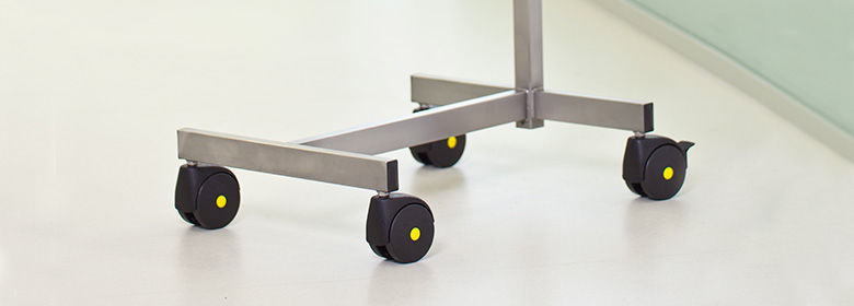 The electrically conductive double castors (castor Ø 75 mm), of which at least two with brakes, enable the mobility of the instrument tables.