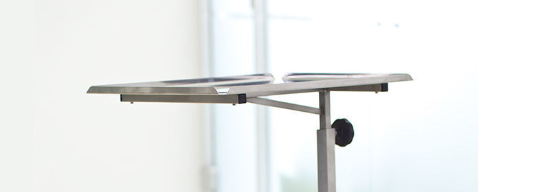 The instrument tables are characterized by high-quality materials and workmanship. The frame and table top are made entirely of stainless steel. Thanks to the electrically conductive double castors, the instrument tables are not limited in their scope, but can be used wherever they are needed.