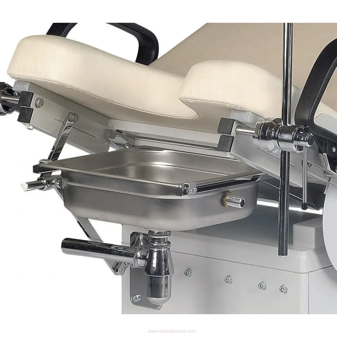 A special feature of the urology examination chairs AGA-URO-LIFT (Article No. UUS-3060/EEE and UUS-3060/EE) is the seat-synchronized centrifugal utility sink, which provides increased splash protection, even in a raised pelvis position. The sink is equipped with a siphon, inlet and outlet hoses and adjustable spray nozzle.