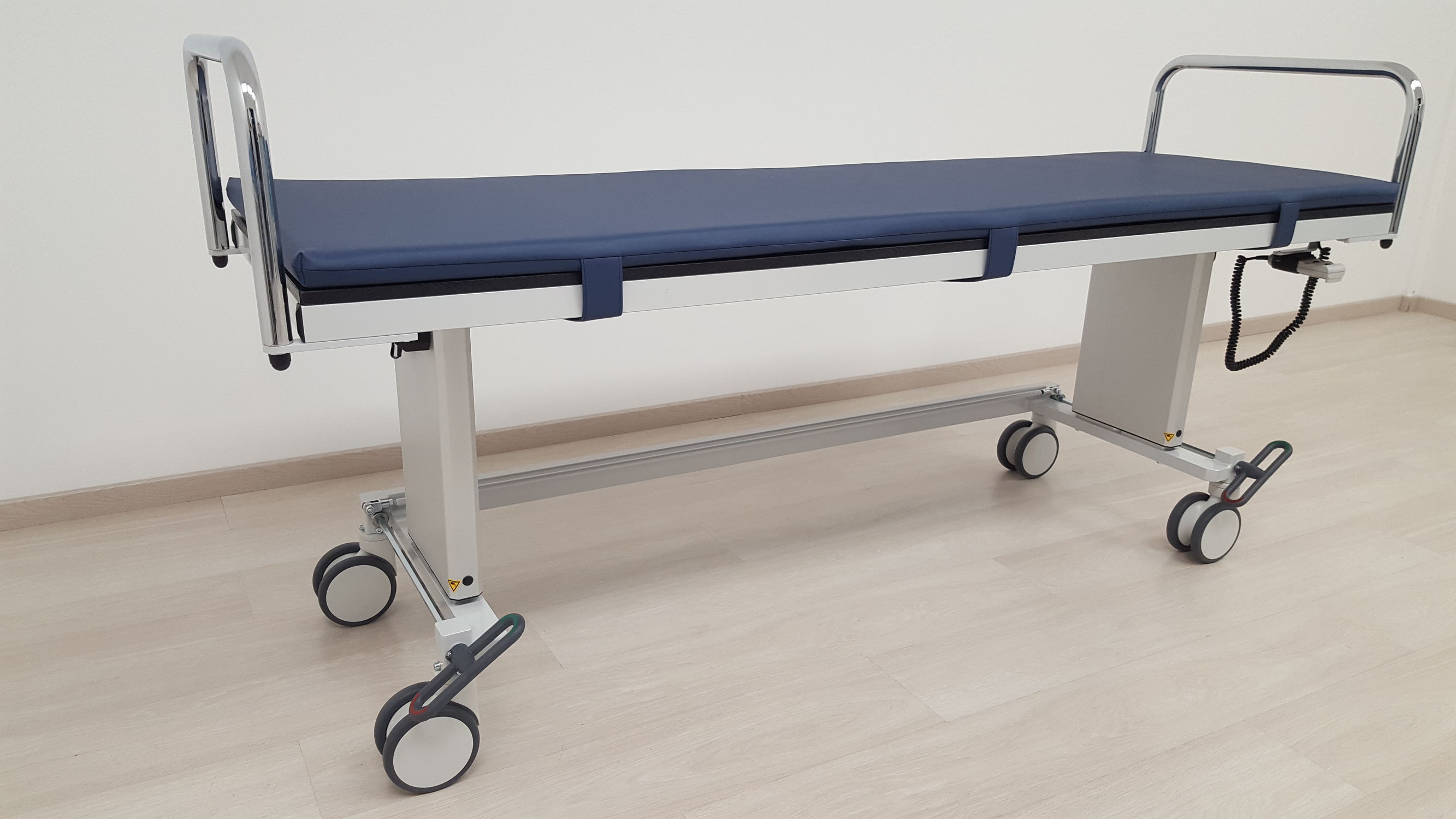 The two lifting columns (low-voltage electric drives), which are characterized by their smooth running, are made of anodized light metal and are controlled by a transformer and operated by a hand switch. Connection values per motor unit: 230V, 50/60Hz, 6.0A, 240W, IPX6, v=16mm/s, 2 x 1,000N.