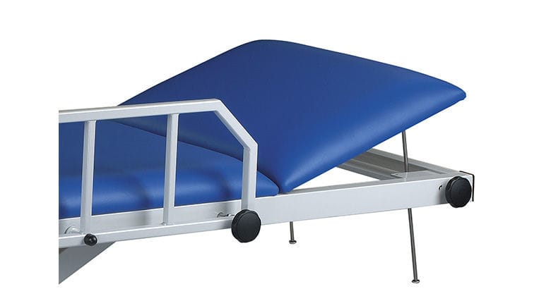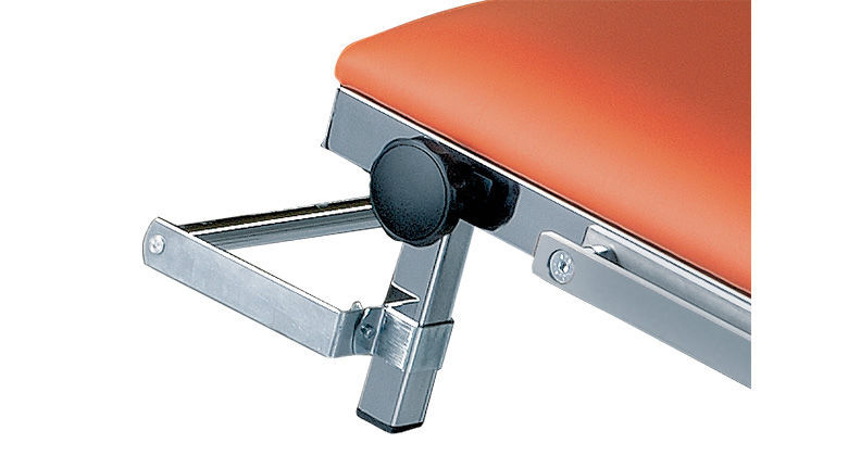 For safer patient transport, these recovery tables are supplied with two side guards, dimensions approx. 760 x 250 mm (L x H). They can be lowered to upholstery height using a pivot mechanism and secured using spring-loaded handwheels with fixing bolts.