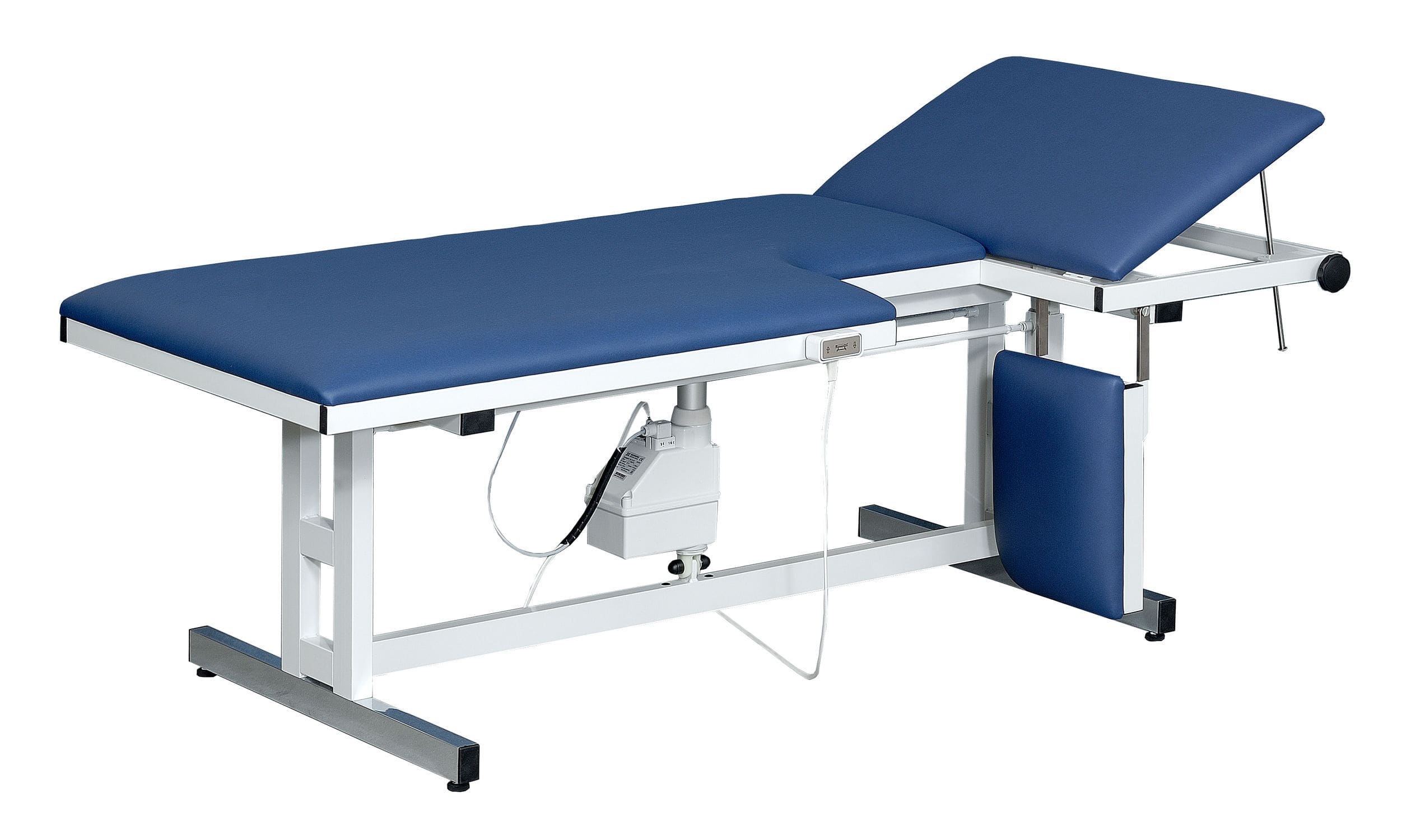 If you are looking for echocardiography tables that only need to be adjusted in height from time to time or should be independent of the power supply (electricity), we recommend purchasing an echocardiography table with manual height adjustment. In this price-conscious version of a height-adjustable echocardiography table, the hand crank is operated from the foot end. After use, the hand crank is simply pushed back under the tabletop surface. Cutouts are also incorporated into the tabletop surfaces of the echocardiography tables, especially for cardiac examinations using a transducer.