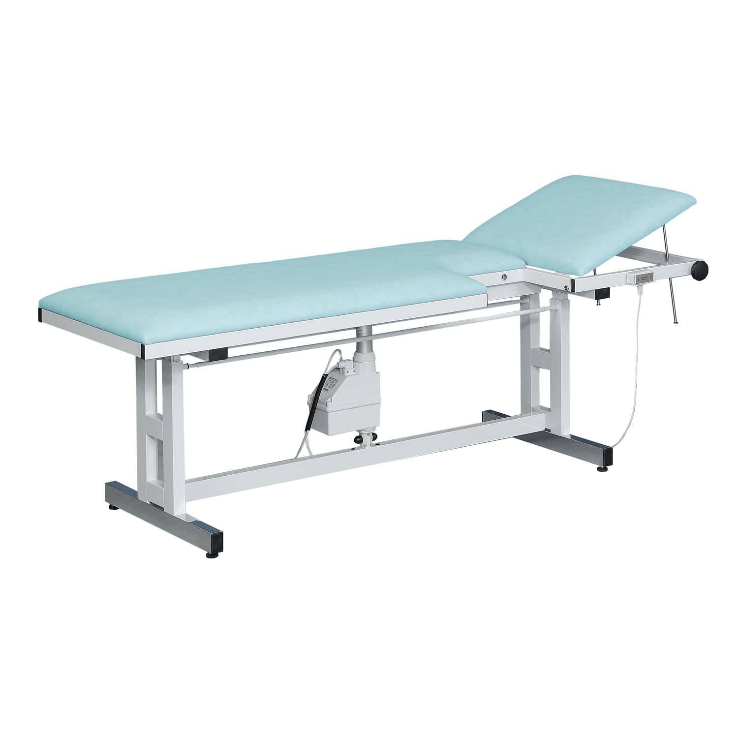 The echocardiography tables with manual height adjustments from AGA Sanitätsartikel are available in two frame finishes (lacquered and chrome-plated) as well as two widths.