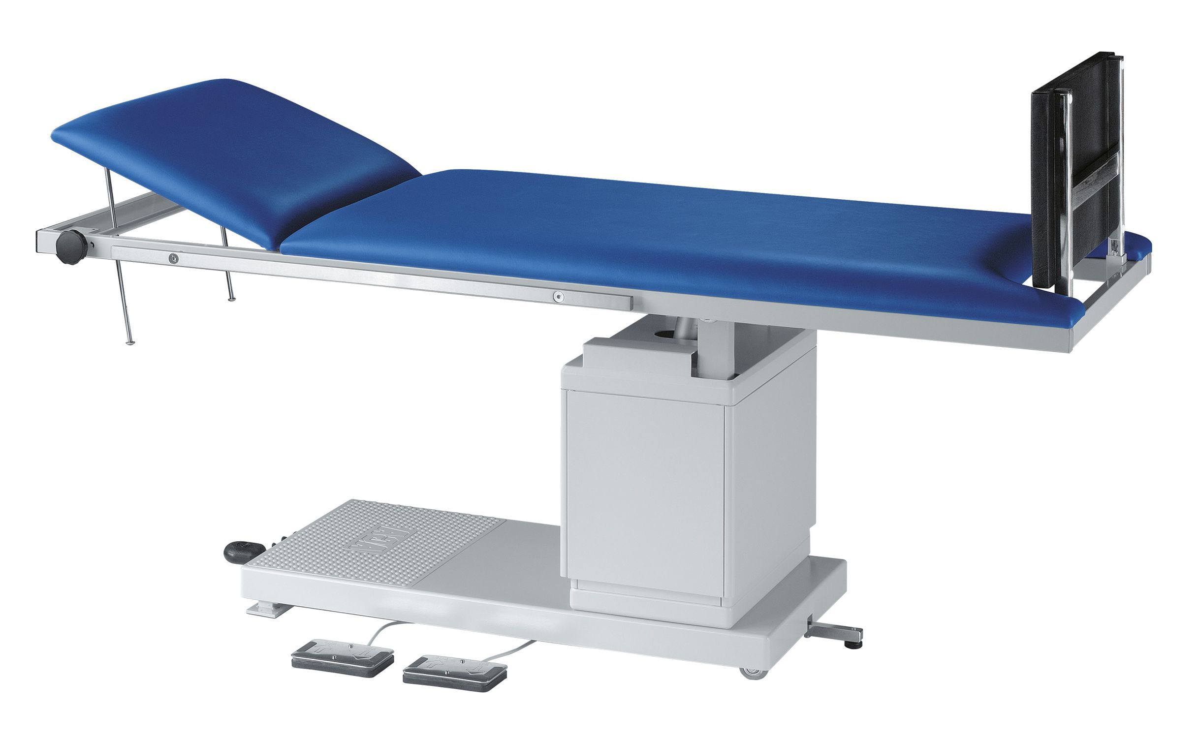 If necessary, for example when a patient collapses, the phlebology tables can be adjusted from the almost vertical position (74°) to the horizontal position (0°) to the shock position (20° negative).