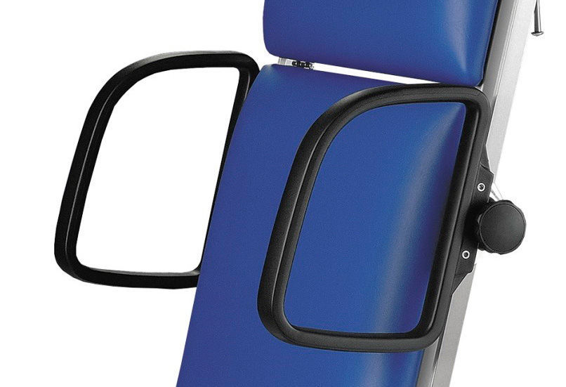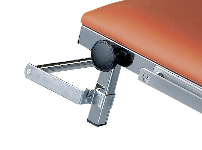 In order to give the patient the physical and psychological safety required during treatment and when getting on and off, the combination of the upholstery cutout at the foot end with the extra-large, removable footboard was developed for the tilting tables.