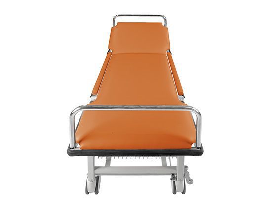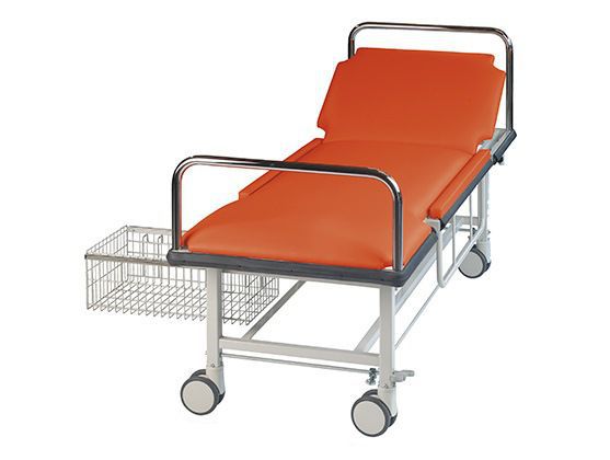 The patient transport table is equipped with two chrome-plated push handles to make steering and moving easier. The undersides of the side guards are padded and covered with synthetic leather, to offer the patient a comfortable feeling when getting on or off.