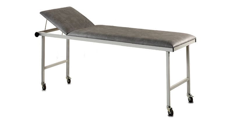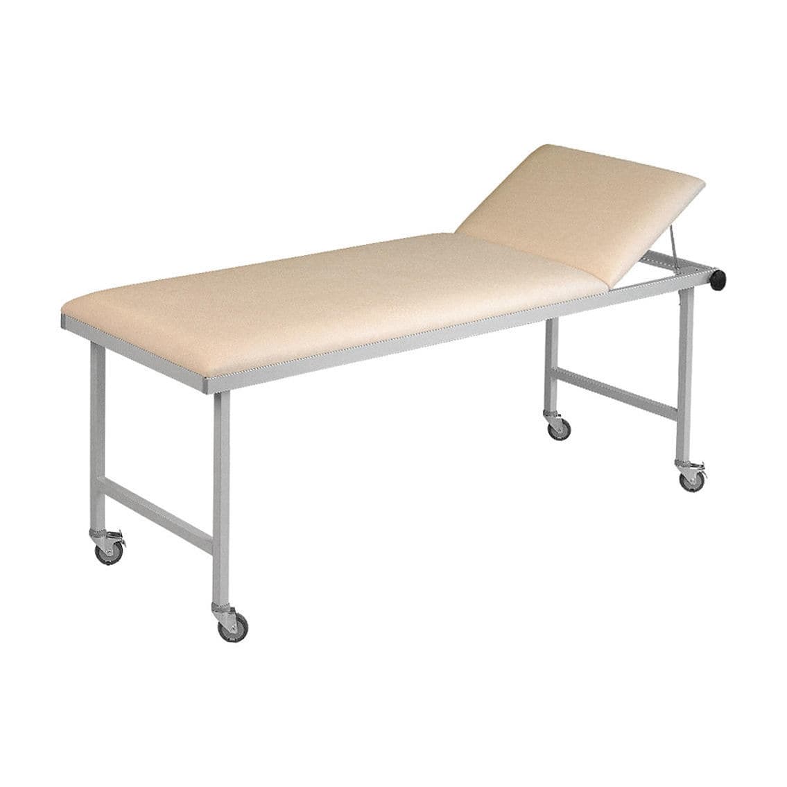 The base model for these mobile patient transport tables are the examination tables with continuous headrest adjustment, which are then equipped with a set of castors.
