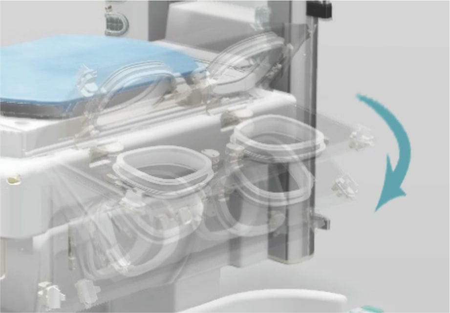 1) 360° rotatable infant bed, minimize the baby stimulation during the treatment;