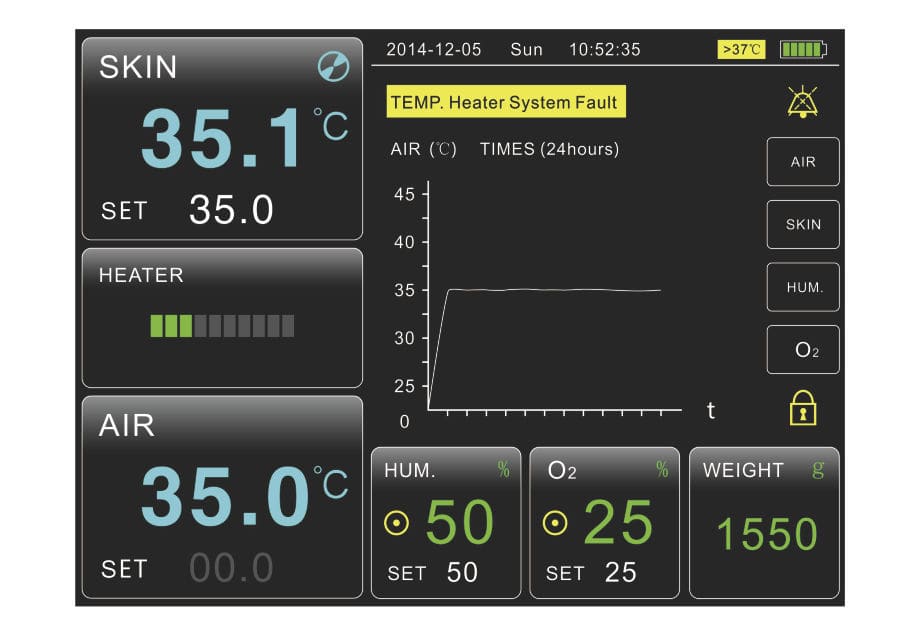 Radiant temperature control system (Pre-warm Mode, Manual Mode, and Baby Mode).