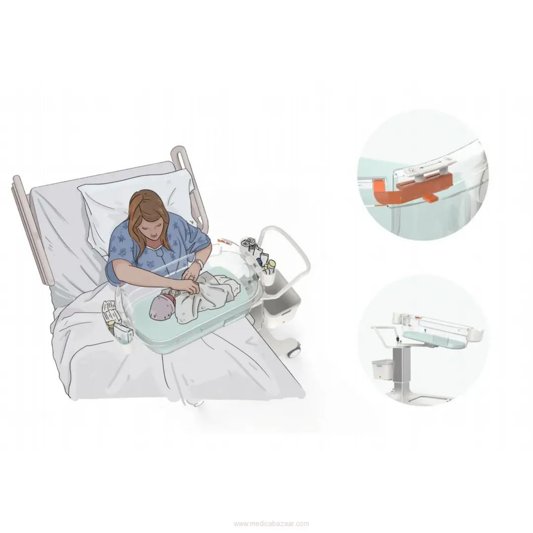 3) The large-capacity storage basket, together with the storage pockets on both sides of the bed, provides a larger storage space for maternal and child supplies and clinical care items.