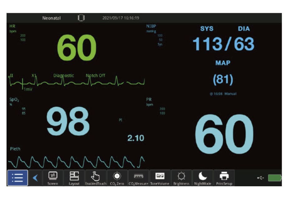 Non-invasive, continuous measurement of methemoglobin (SpMet) in the blood; evaluate the patient's infusion status (PVI) and protect the vital organs of the neonates.