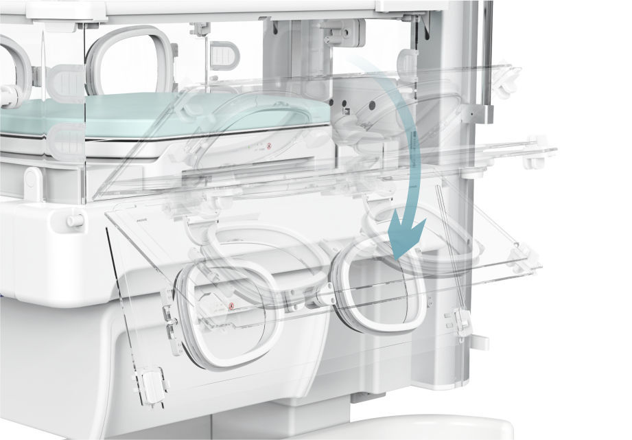 1) 360° bilateral rotating infant bed allows medical staff to observe and care for newborns in all directions, reducing external stimulation.