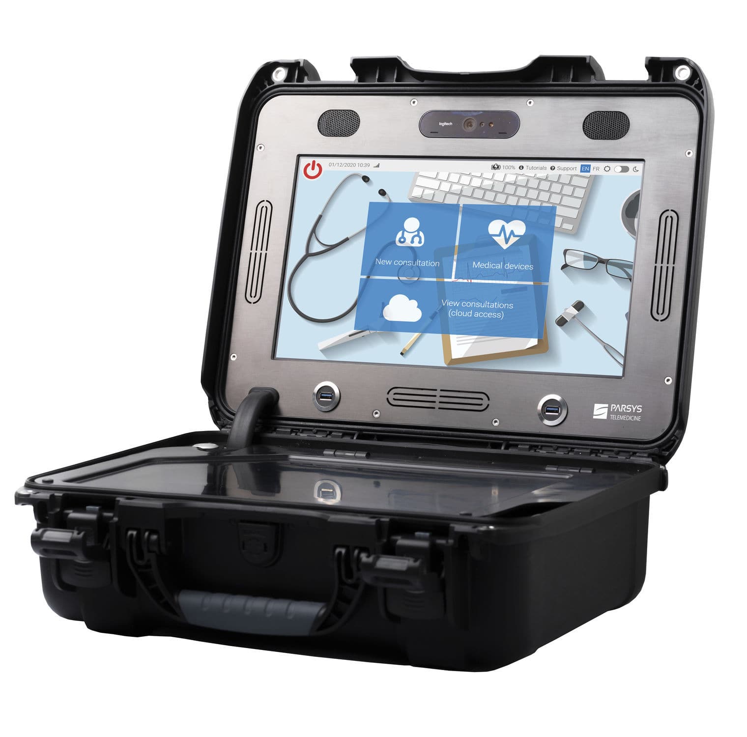 The S3 Telemedicine Station is specially designed to allow Full HD teleconsultation as well as the acquisition and transmission of vital data centralized on a large touchscreen, via the MedCapture software, and transmitted securely on the Cloud Parsys platform.