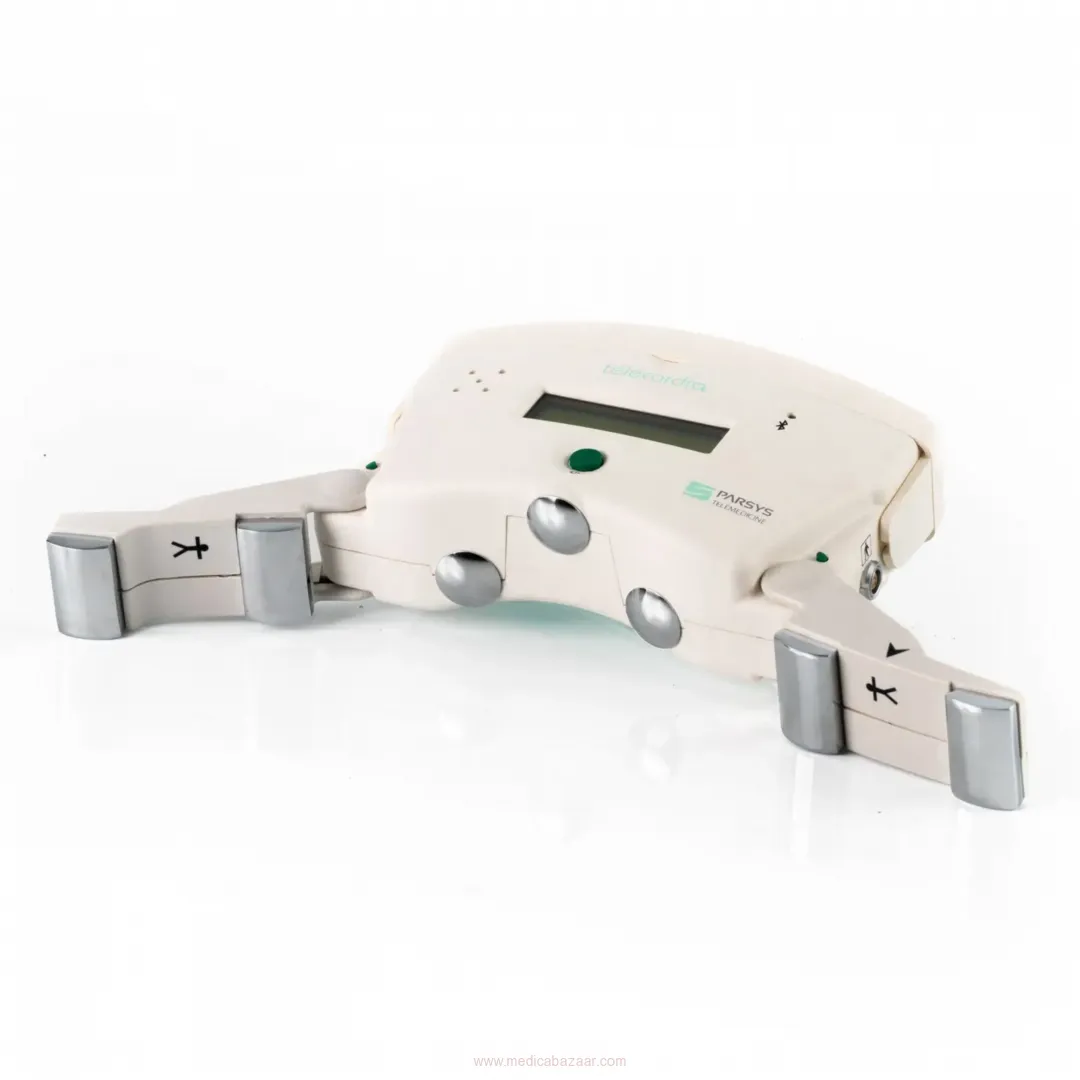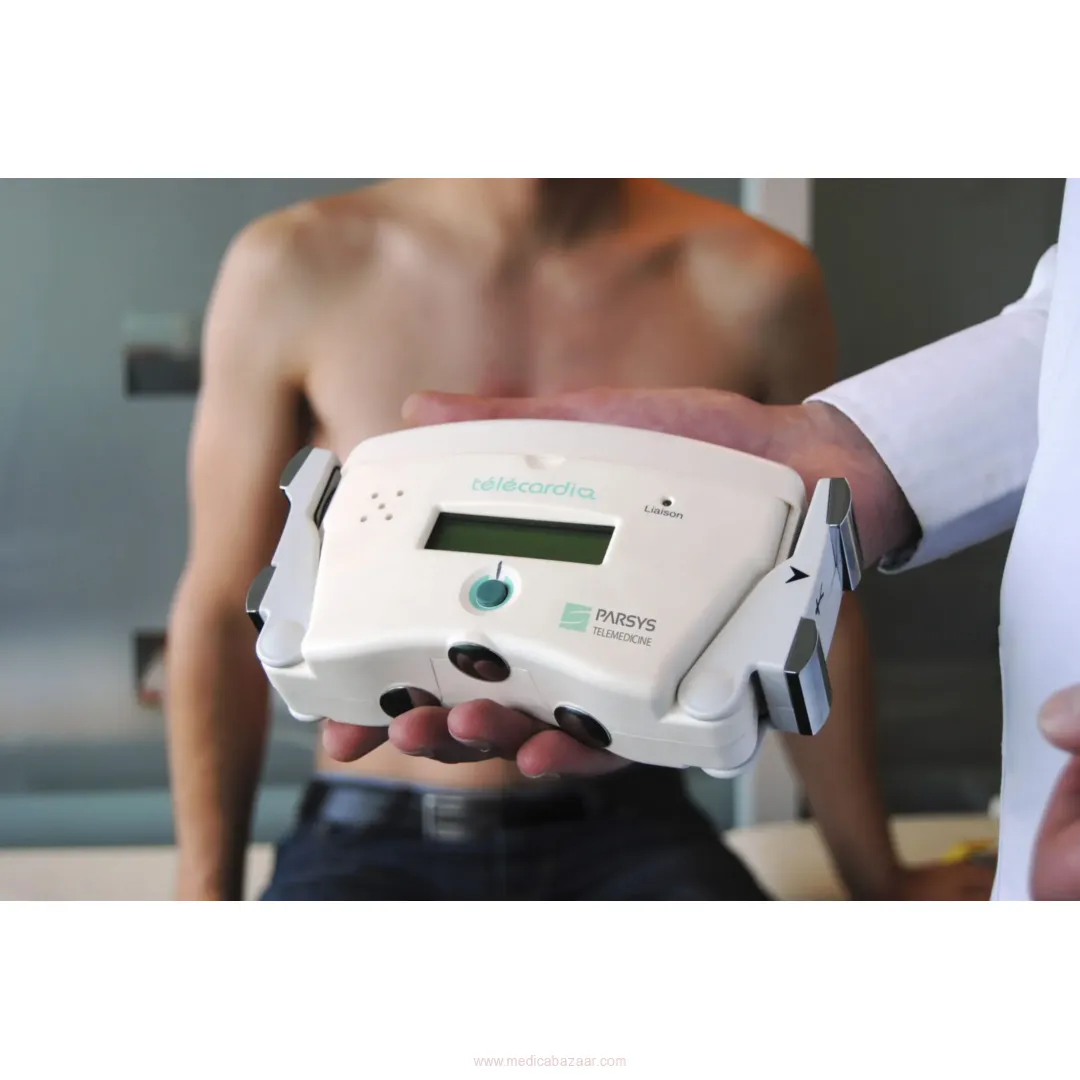 This device, patented by Parsys, allows healthcare professionals to quickly acquire and transmit a patient's electrocardiogram without the constraints of a conventional device. Telecardia is portable, compact and lightweight, with fixed thoracic electrodes, without consumables.