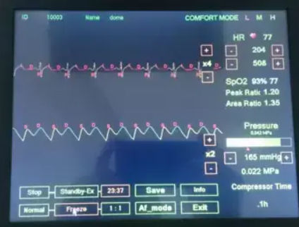 • High accurate Real-time ECG and Sp02 monitor function during treatment, showing the D/S ratio, intuitive observation of treatment effect.