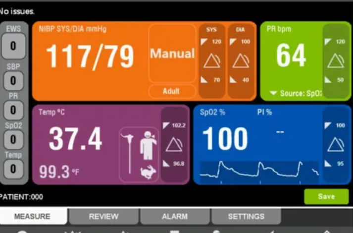 The aim of the EWS is to improve patient outcomes by identifying at risk patients who need urgent medical attention and intervening early to prevent clinical deterioration. This system involves the assignment of numeric values to several physiologic parameters. RVS-100 can be programmed with NEWS (National Early Warning Scores), MEWS (Modified Early Warning Scores) and also has 5 customisable profiles which can be set by the end-user if they have different parameter values.