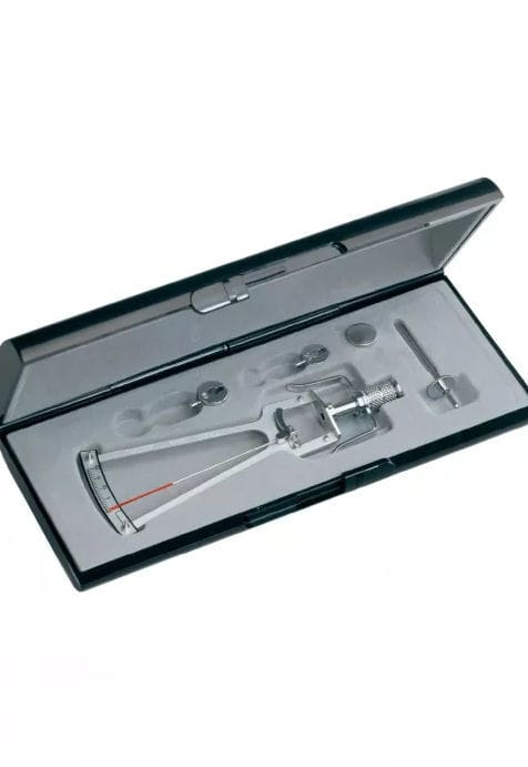 Riester’s schiötz Tonometer is used to measure intraocular pressure. Eye doctors primarily use the tonometry in cases of suspected increased intraocular pressure or as a preventive examination for early detection of glaucoma.