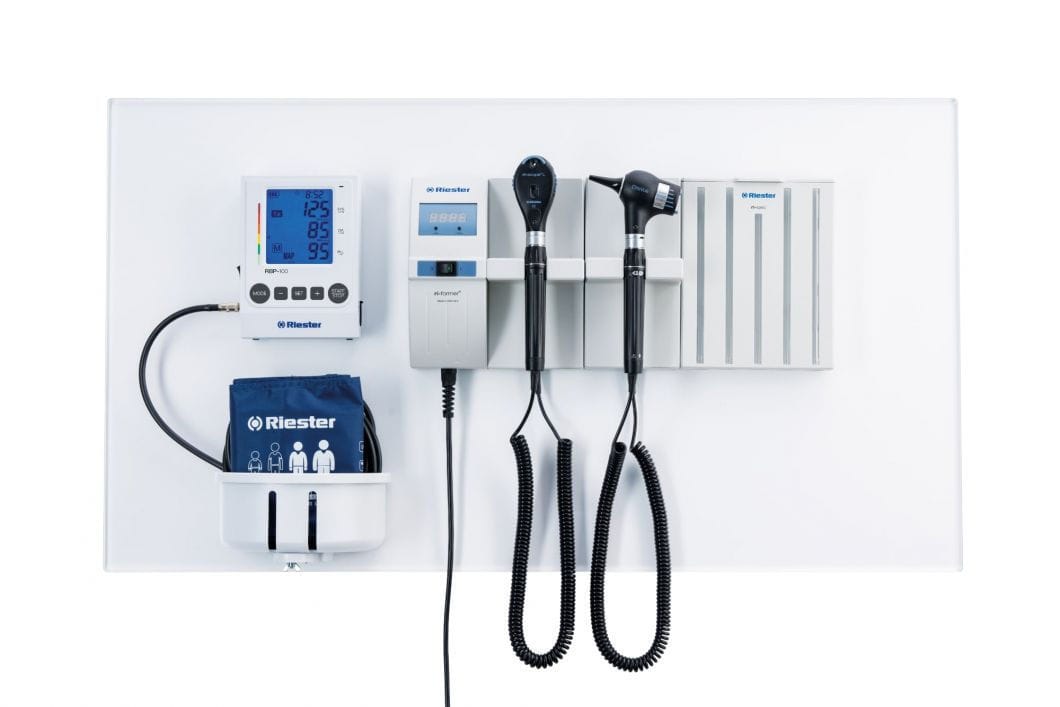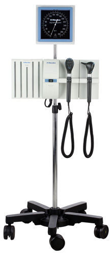 A modular diagnostic system offering the optional modules which can measure blood pressure (NIBP), temperature, and with centralised electricity power supply it can support up to 3 handles, each equipped with 7 different interchangeable heads.