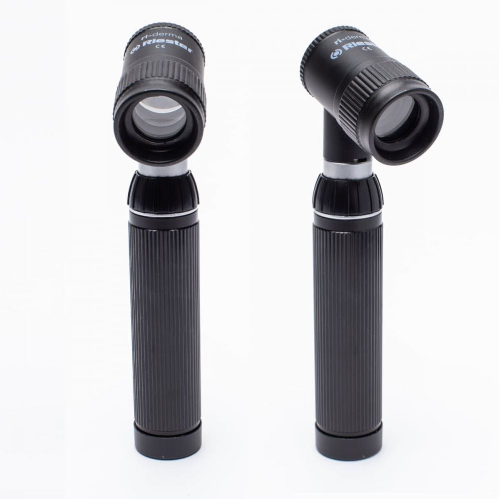 ri-derma dermatoscope offers physicians and specialists a reliable method of dermatoscopic screening and early identification of malignant melanomas. Proven epiluminescence microscopy allows melanocytic and non-melanocytic structures to be distinguished and enables precise observation of changes in skin pigmentation.